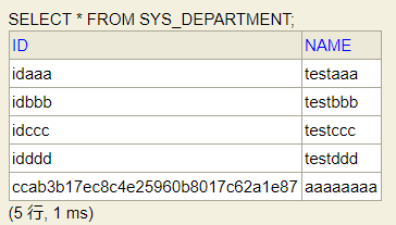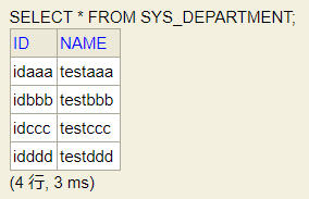 执行 SELECT * FROM SYS_DEPARTMENT ,可以发现数据已经成功初始化了:
