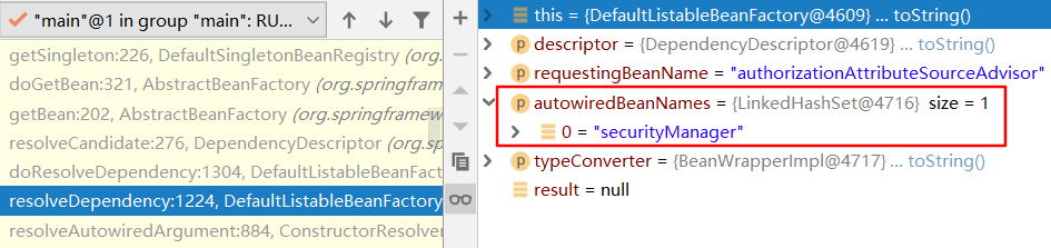 既然上面看到了方法调用栈中,DemoService 被自定义 Realm 依赖后在 ApplicationContext 的 refresh 阶段的 registerBeanPostProcessors 中就已经被触发创建,可它为什么非要搞这一出呢?自定义 Realm 放到 finishBeanFactoryInitialization 中统一创建不好吗?下面咱通过 Debug 研究问题的成因。