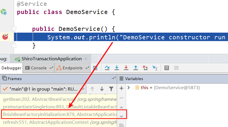 可以发现已经到了可以正常初始化单实例 Bean 的时机了,此时创建的 DemoService 就不会有问题了。